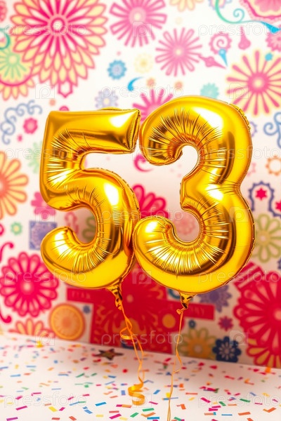 Гелий день рождения воздушный шар формы номер пятьдесят три, золотые буквы фигура 53 праздник праздничный фон декор