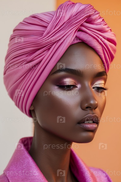 ИИ генеративный портрет молодой женщины естественно чистый помада макияж, модная модель красоты в розовом костюме