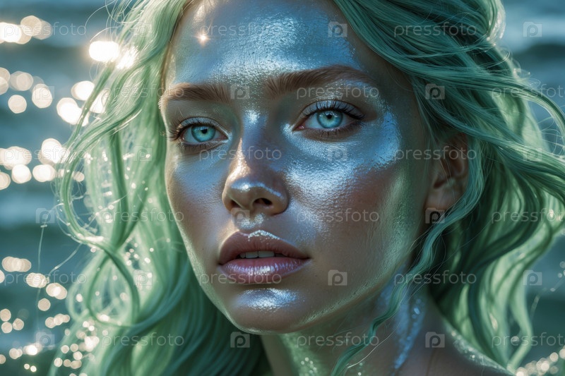 AI Generative Fantasy портрет молодой красивой женщины волшебная модель, русалка в море из сказки
