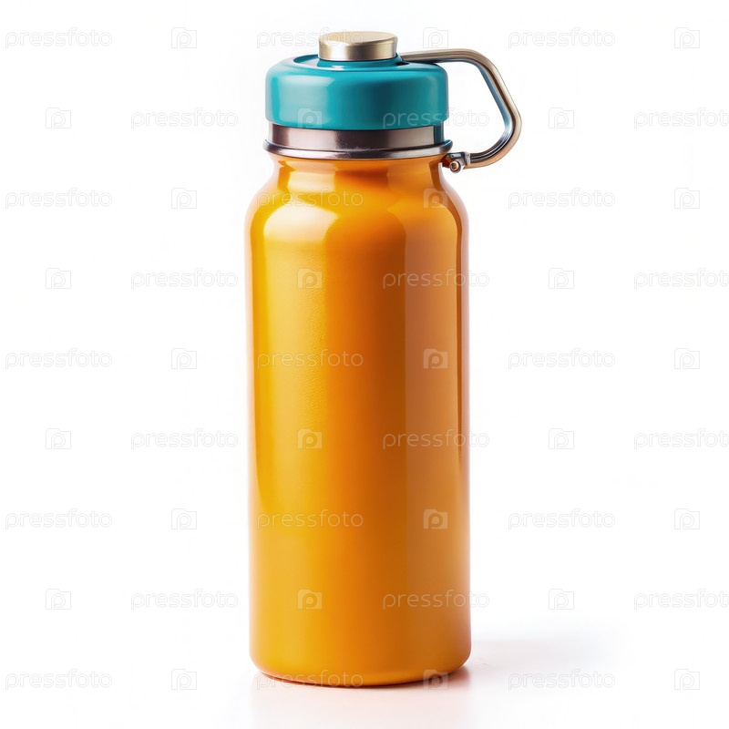 Повторяемая бутылка с водой со свежей крышкой и карабинером. генеративный оранжевый AI