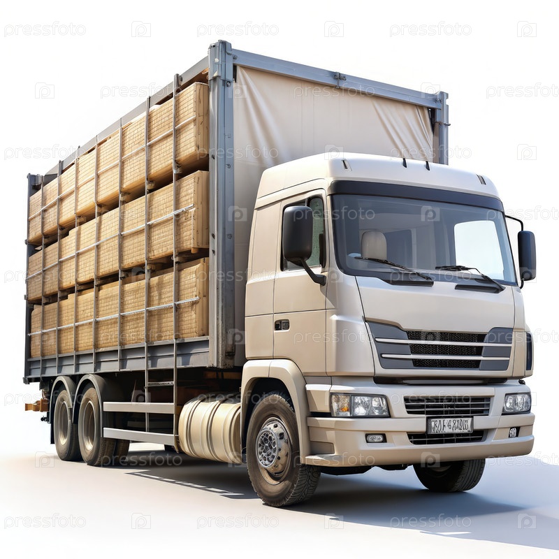 Полугрузовик, загруженный товарами в белой студии. генеративная ИИ