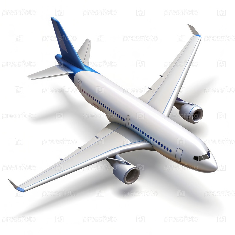 Бело-синий пассажирский самолет, изолированный на белом фоне
