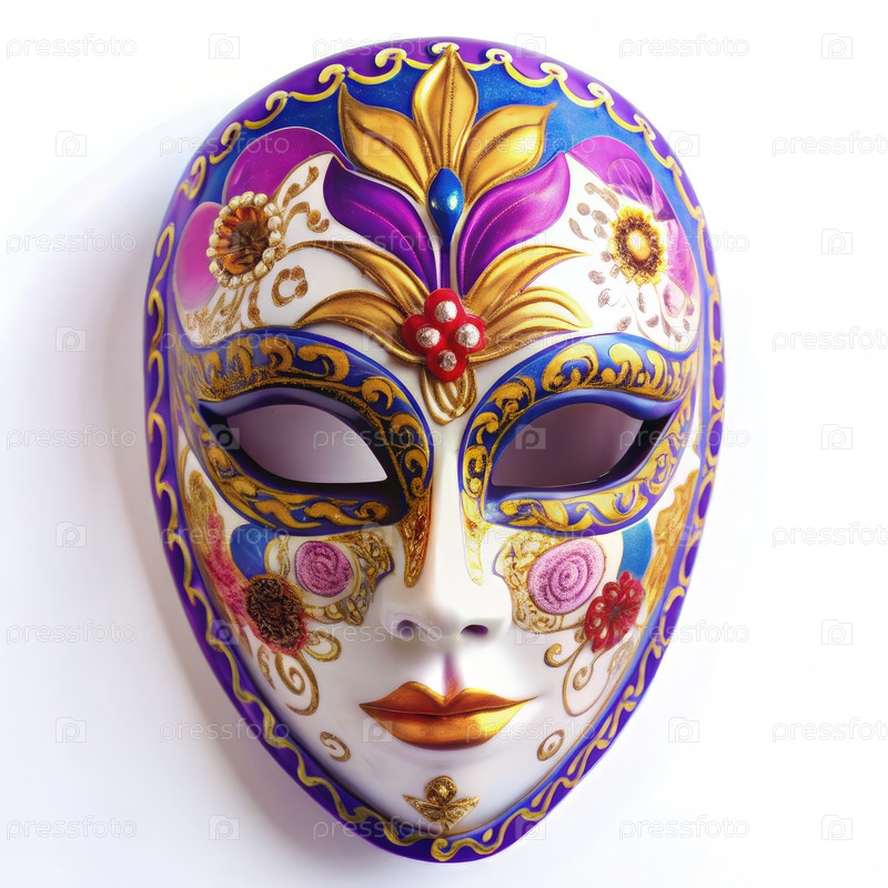 Украшенная фиолетовая и золотая карнавальная маска с цветочным дизайном. генеративный AI