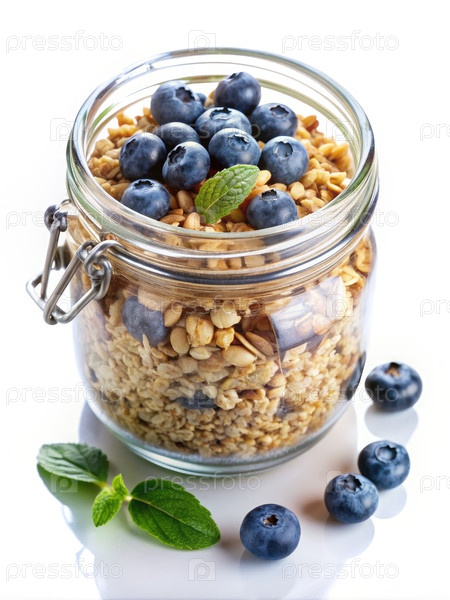 Стеклянная банка, наполненная овсянкой гранолой и чернилами