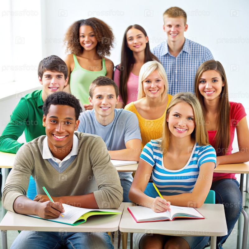 Разнообразная группа учеников внимательно участвует в классном уроке