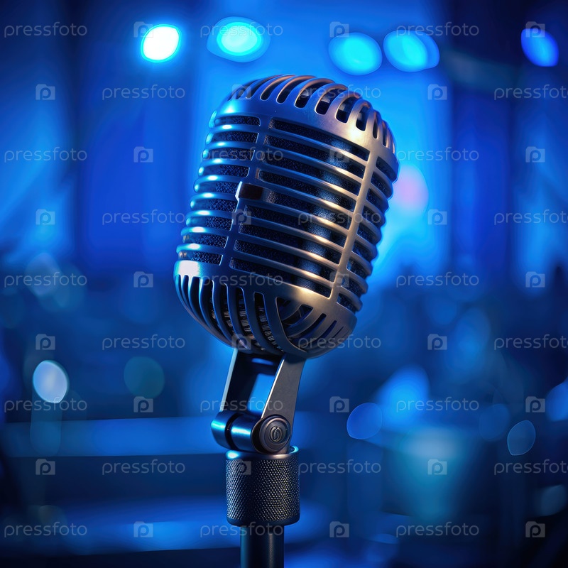 Классический микрофон готов к шоу под голубыми световыми фонарями