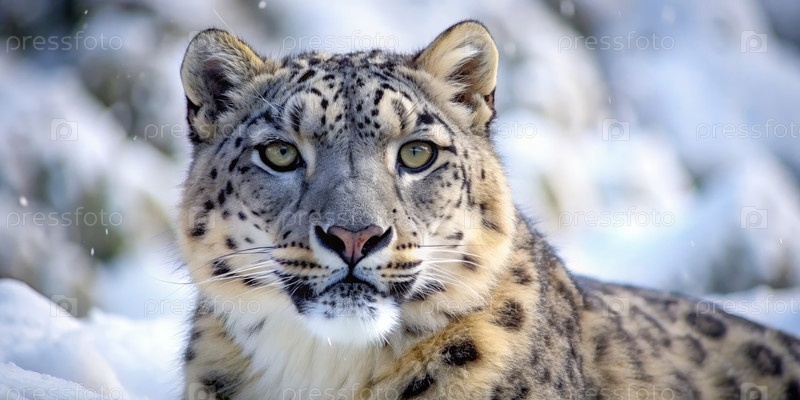 Ближайшее изображение снежного леопарда в снегостойкой горной среде