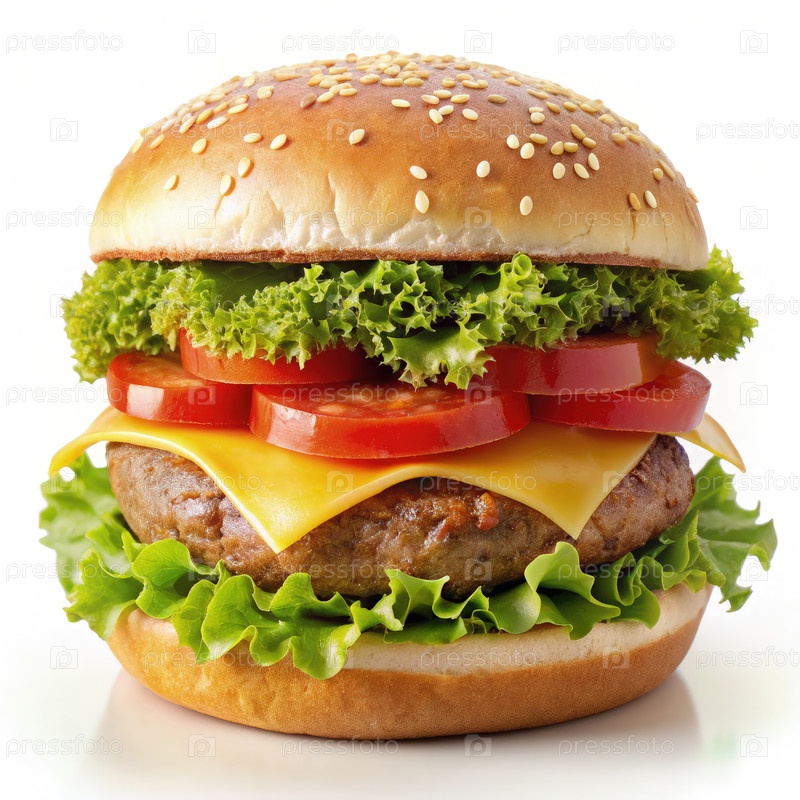 Ближайшее изображение вкусного чизбургера с салатами и томатами