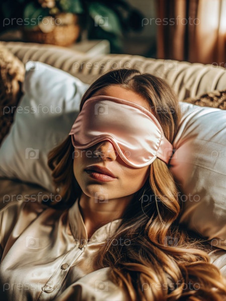 Женщина в розовой шелковой маске отдыхает на диване. генеративный ИИ