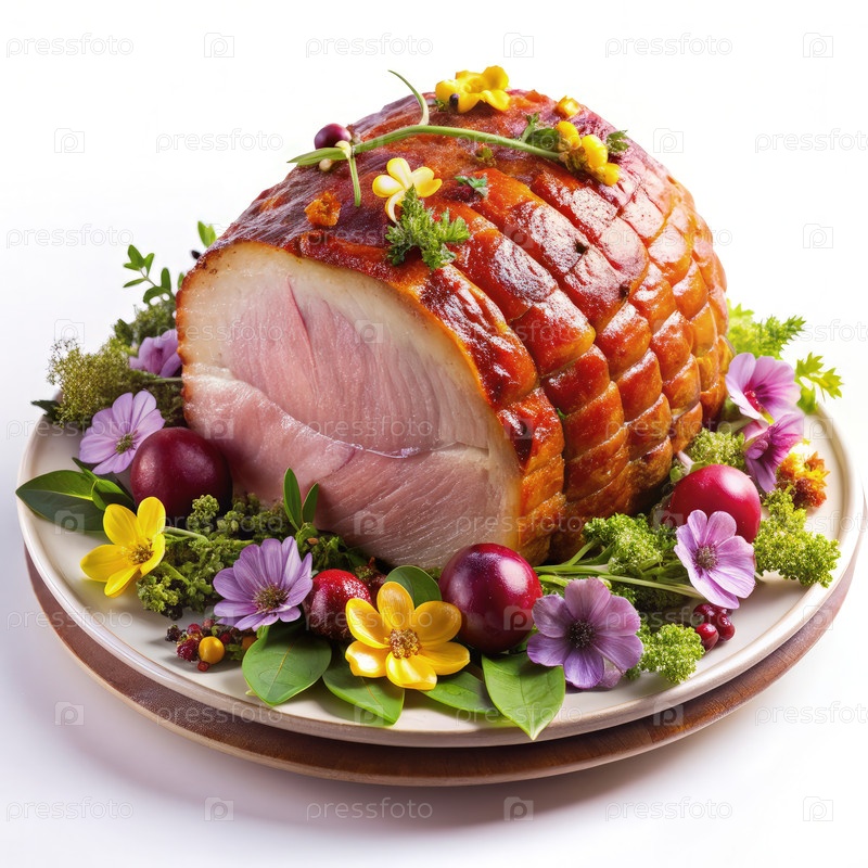 Глазированная ветчина с карамелизованным покрытием и весенними цветами
