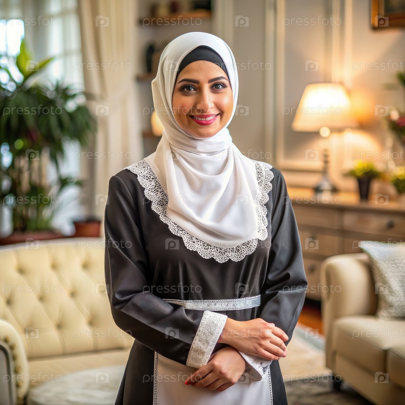 Улыбающаяся горничная в арабском домашнем костюме. генератив AI