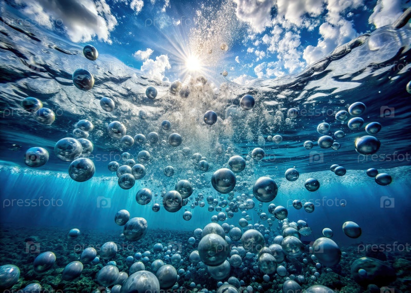 Подводные пузырьки поднимаются к Солнцу в ясный день