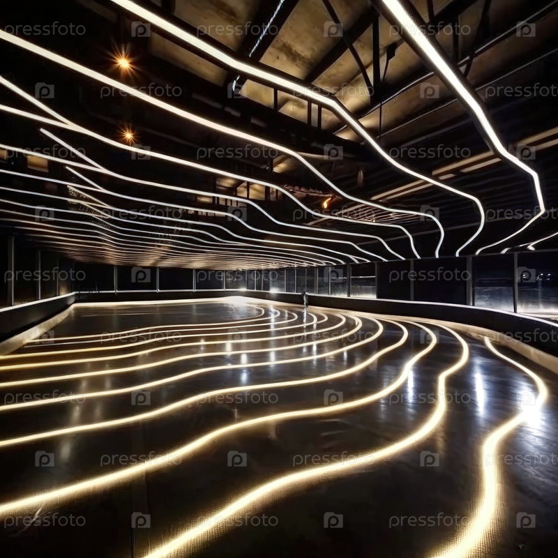 Закрытая лыжная площадка для катания на льду с неоновым освещением.Современный генеративный ИИ