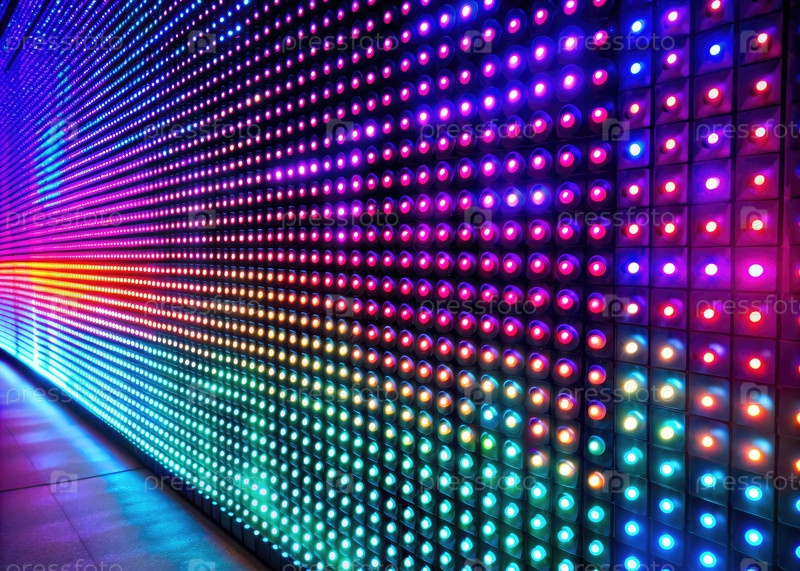Красочная установка на стене светодиодных ламп с градиентным осветительным шаблоном. генеративный AI