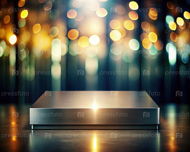 Металлический подиумный дисплей со световым фоном боке. генеративная ИИ