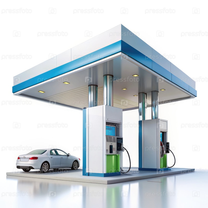 Дизайн водородной заправочной станции с автомобилем впереди. генеративный современный ИИ