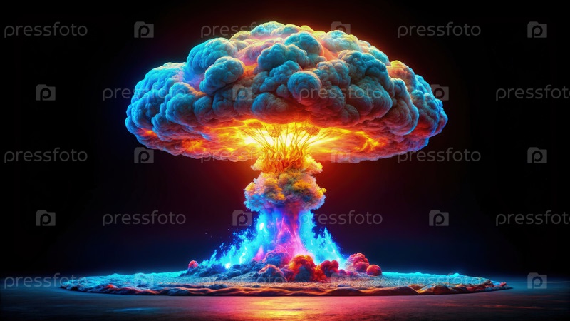 Голографическое изображение облака ядерных грибов на темном фоне