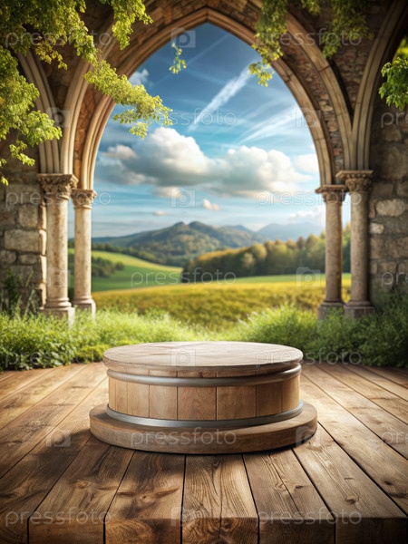 Деревянный подиум под аркой с видом на Ролинг-Хиллз