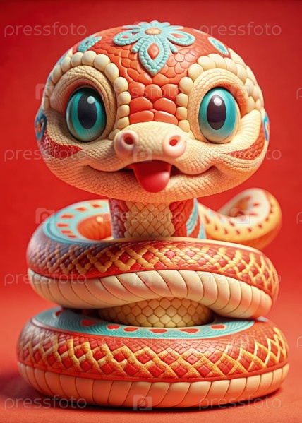 Милая красная и желтая змея с голубыми глазами в закрученной позе на весенний фестиваль