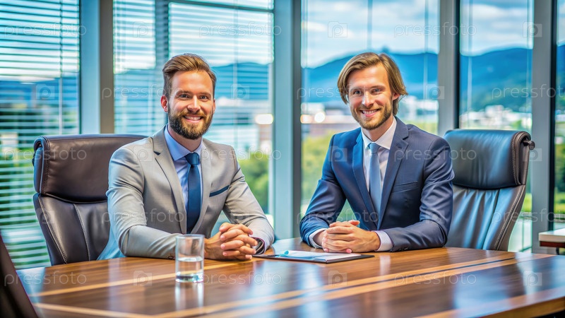 Два бизнесмена, сидящие в современном конференц-зале