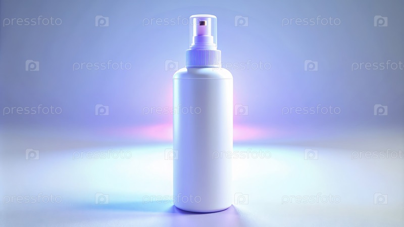 Белая пластиковая спрейная бутылка с прозрачной крышкой на градиентном фоне