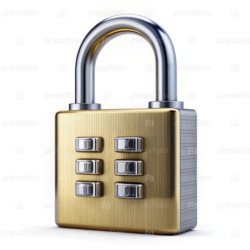 Золотой комбинационный замок с шестью пронумерованными кнопками для обеспечения безопасности и защищенности