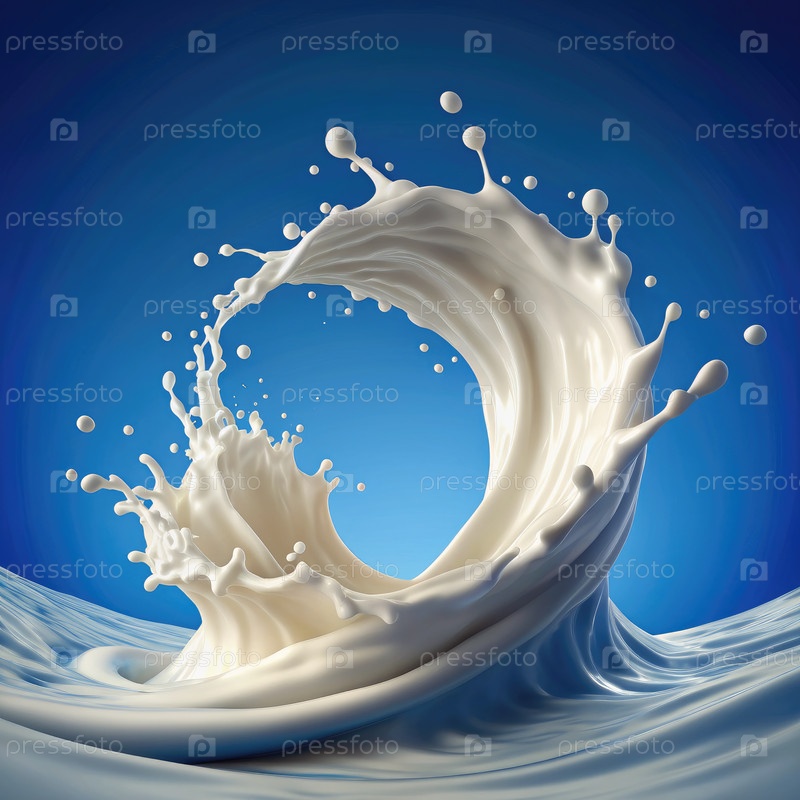 Молочная волна создает идеальный круг на синем фоне