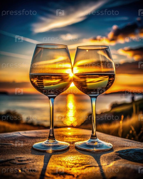 Два бокала вина для восхваления заходящего солнца