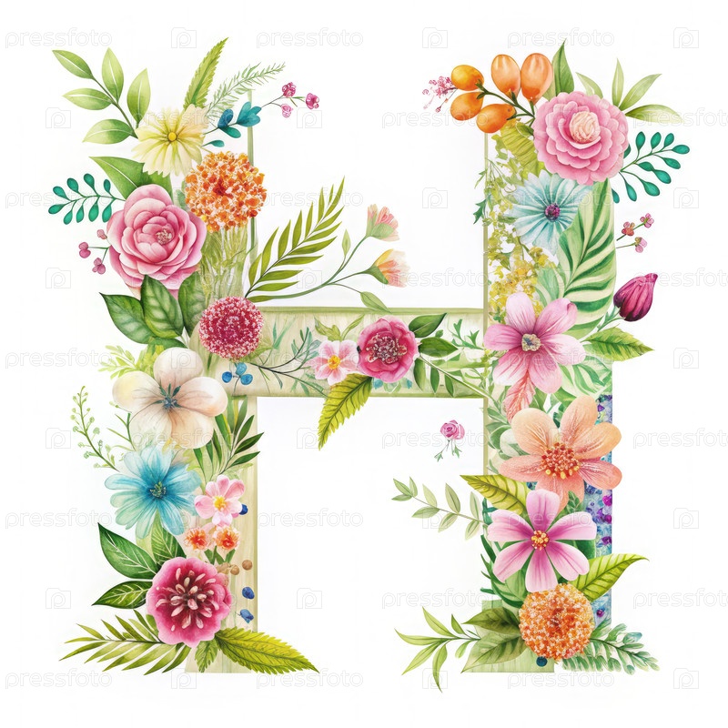 Акварельная цветная буква H Иллюстрация на белом фоне