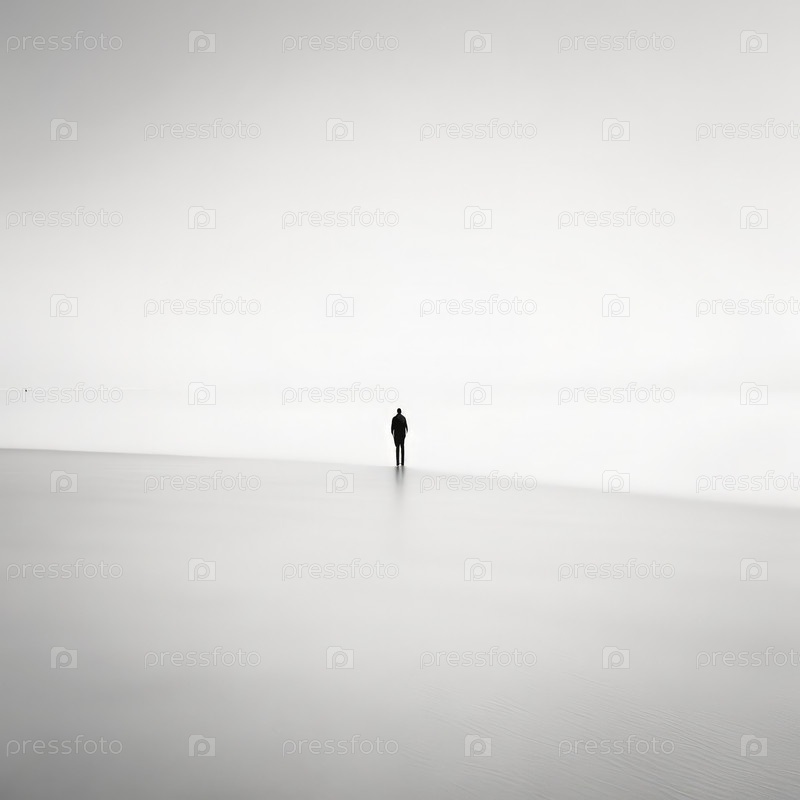 Одинокая фигура ходит по белому, обширному ландшафту