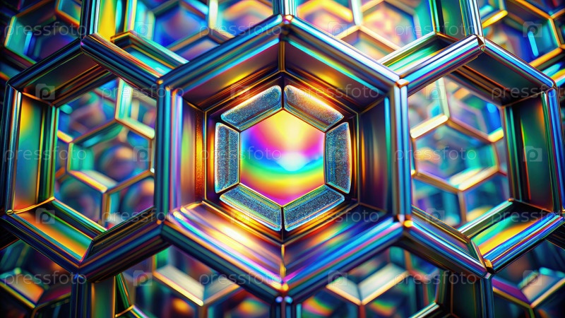 Многогранный эффект линзы шестиугольного призма с хроматическим спектром. генеративная ИИ