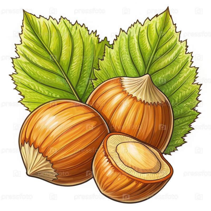 Близкий взгляд на фрукт ореха с зелеными листьями. генеративный ИИ