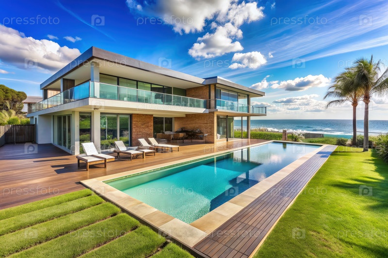 Современная пляжная недвижимость с видом на бассейн и океан