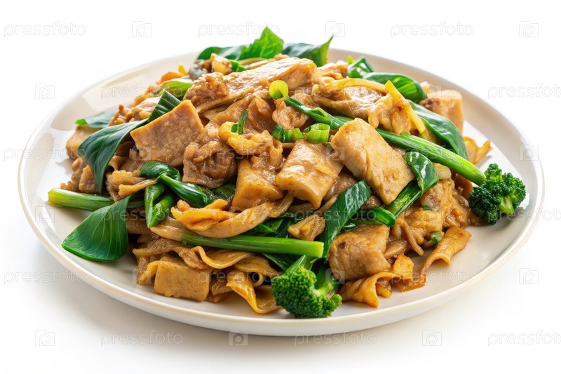 Delicious Pad See Ew с жареным рисовым лапшом, свининой и овощами
