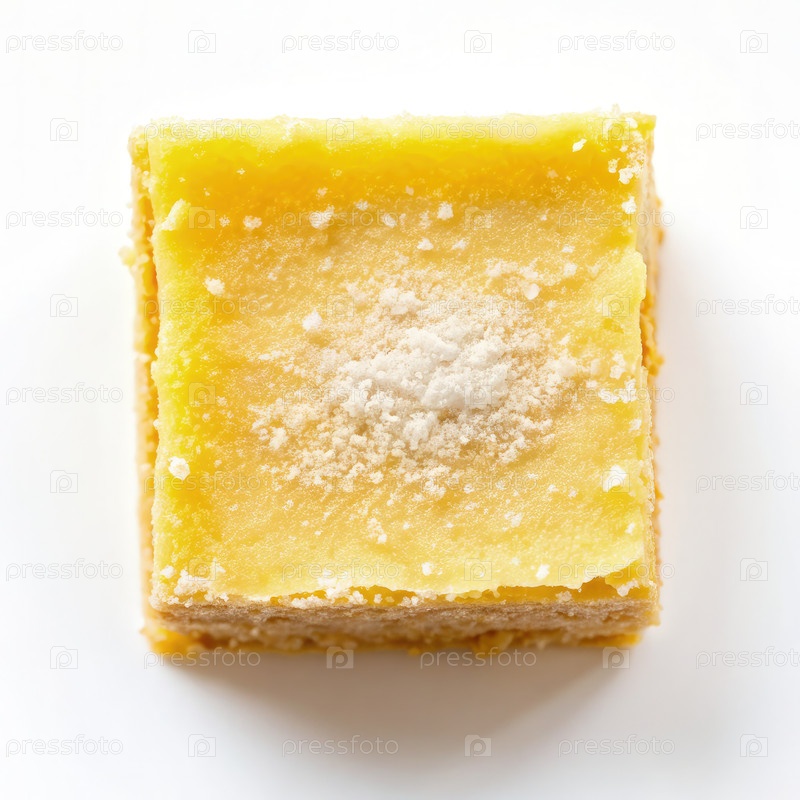 Вид сверху на один лимонный батончик с кристаллами сахара на белой поверхности