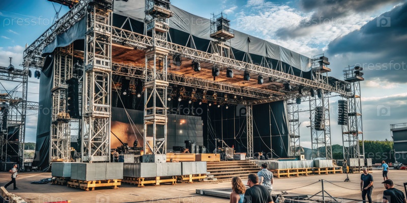 Строительство концертной сцены под облачным небом. генеративный ИИ