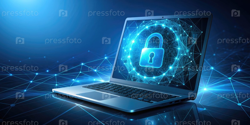 Цифровой ноутбук отображает значок замка на синем фоне