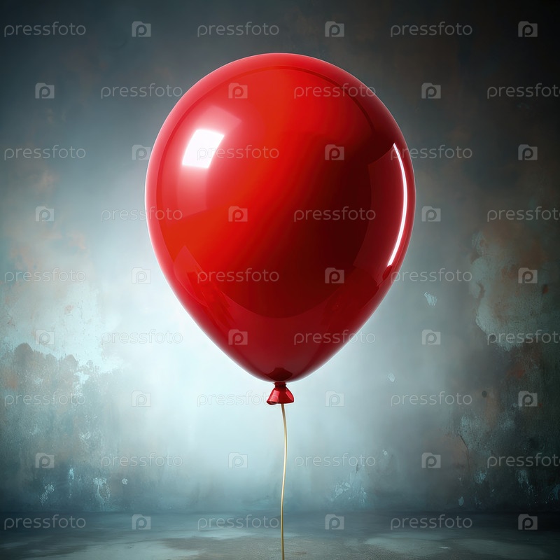 Один красный воздушный шар, плавающий в туманной и жуткой атмосфере