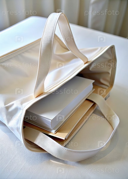 Белое полотенце Tote Bag заполненное книгами на светлой поверхности