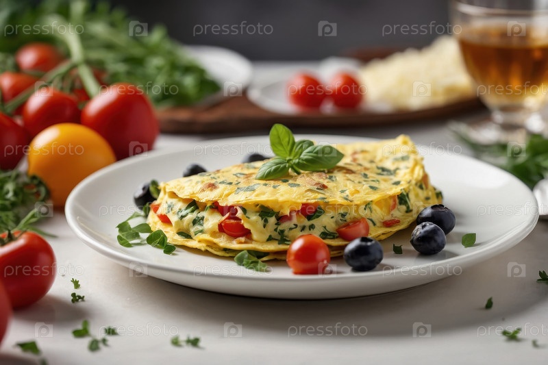 ИИ генеративные яйца омлет с овощами и зеленью, сердечная вкусная традиционная кулинарная бранч-кухня