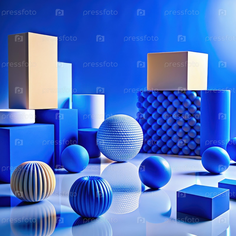 Абстрактные синие и бежевые геометрические формы с текстурированными поверхностями