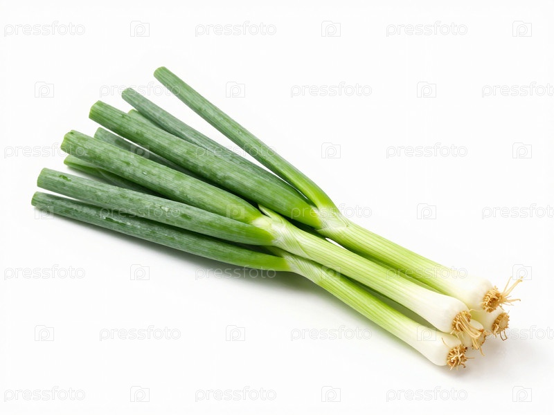 Хрустящие зеленые луки находятся на чистом белом фоне, демонстрируя свой яркий цвет и свежесть, идеально подходят для гарнитуры или вкусных блюд в любой кухне Generative AI