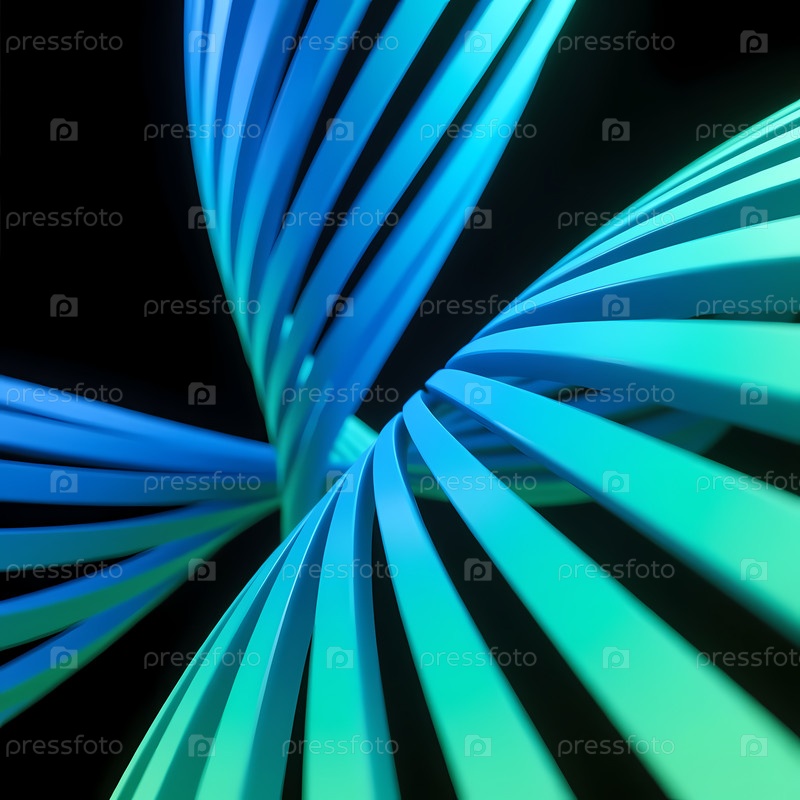 Яркие зеленые и синие ленты грациозно скручиваются на глубоком черном фоне, создавая потрясающее визуальное зрелище текучих линий, которые вызывают чувство движения и ритма Generative AI