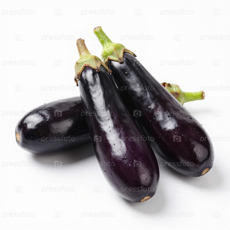 Три ярких баклажана изящно отдыхают на чистой белой поверхности, их глубокая фиолетовая кожа сверкает.Простота подчеркивает их естественную красоту и свежесть Generative AI