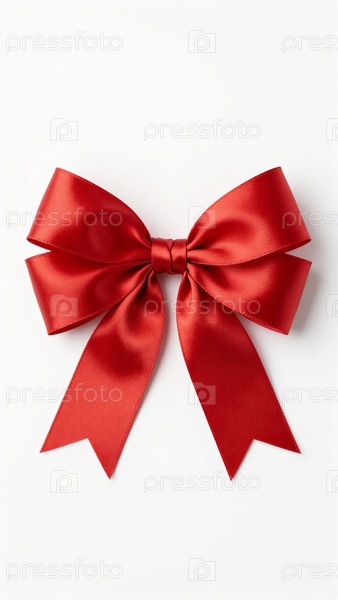 Ярко-красный атласовый бант на белом фоне, Generative AI