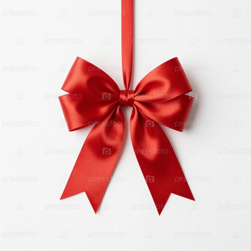 Ярко-красный атласовый бант на белом фоне, Generative AI