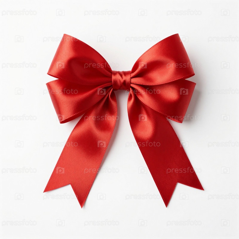 Ярко-красный атласовый бант на белом фоне, Generative AI