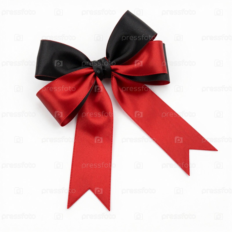 Впечатляющий красно-черный бант элегантно сидит на чистой белой поверхности, сочетая смелые цвета для создания потрясающего декоративного акцента для подарков, мероприятий или специальных случаев