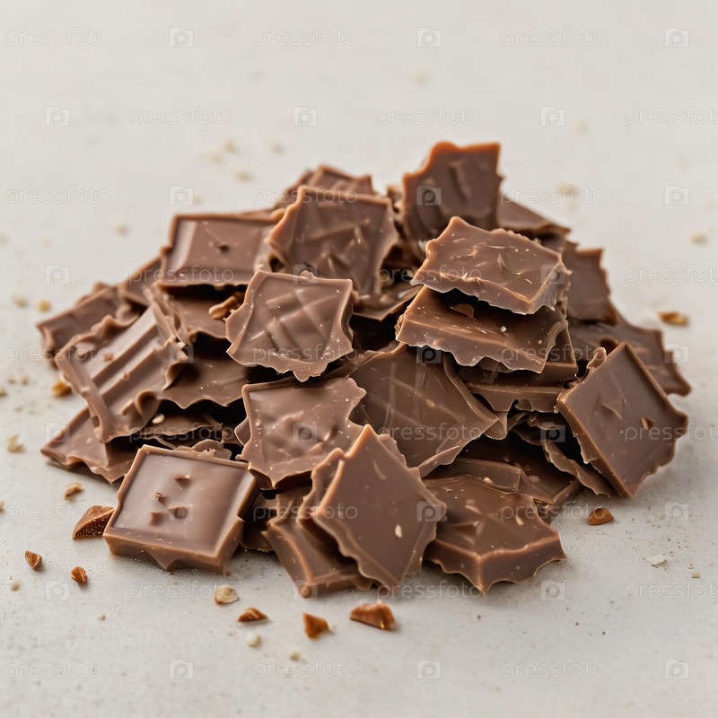 Потрясающая куча мелкообразных квадратов молочного шоколада удобно сидит на светлой поверхности, готовая для плавления, наслаждения или использования в различных рецептах десерта Generative AI