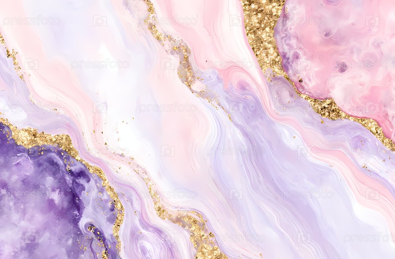 Нежные вихри розовых, пурпурных и фиолетовых цветов гармонично смешиваются с золотыми акцентами, демонстрируя красоту искусства чернил алкоголя.Этот потрясающий дизайн захватывает спокойный момент во времени Генеративная AI